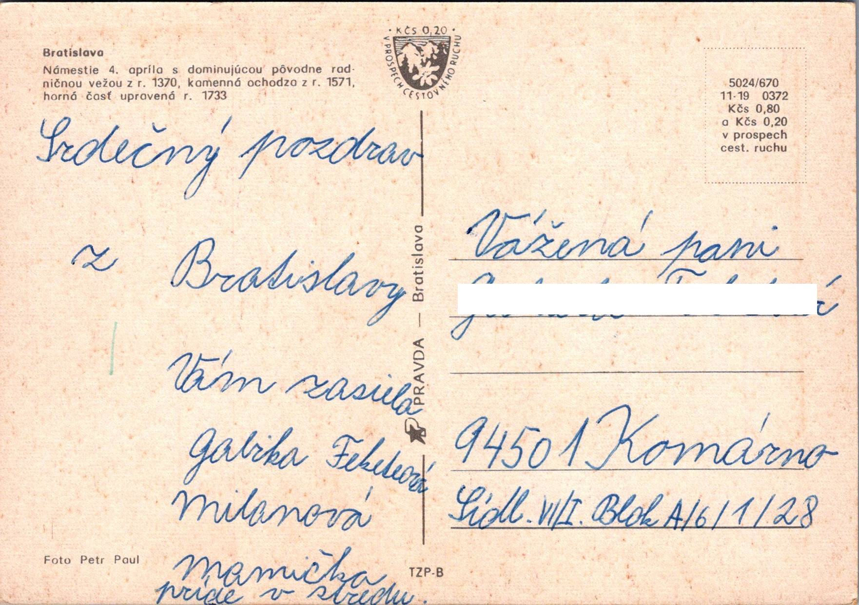 Rok odoslania: neprešla poštou, ale je popísaná
