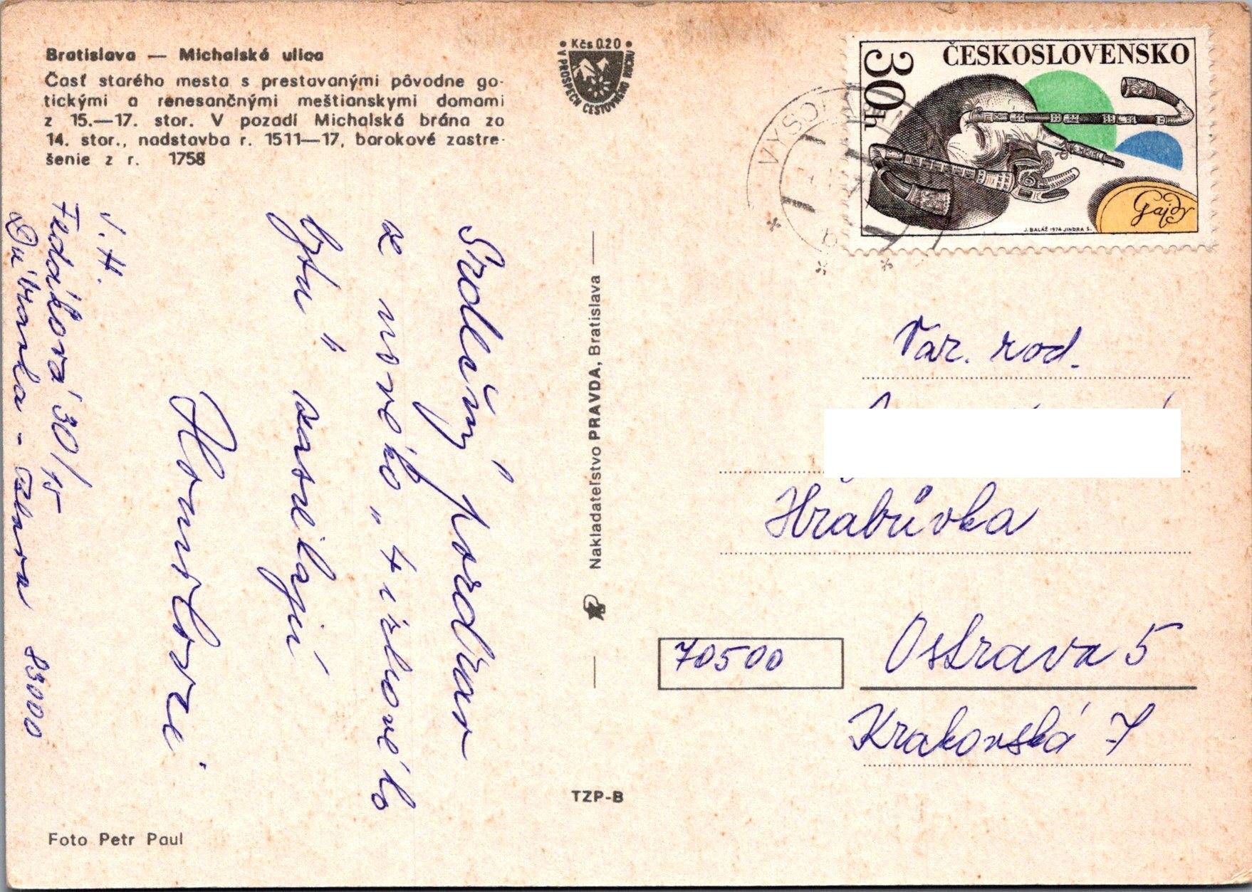 Rok odoslania: nie je vidieť, 70. až 80. roky 20. storočia