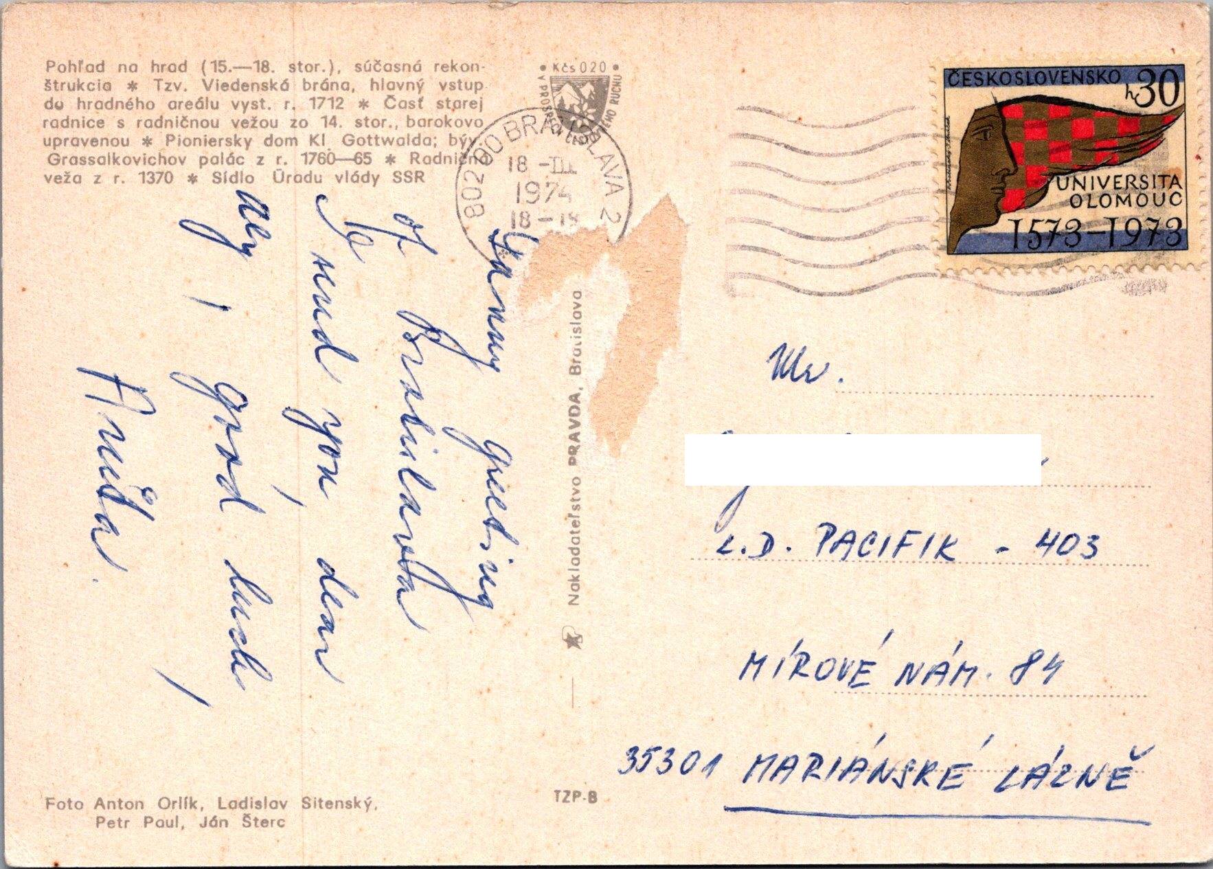 Stav: mierne poškodené rožky, na strane adresáta poškodený papier, ináč veľmi dobrý stav