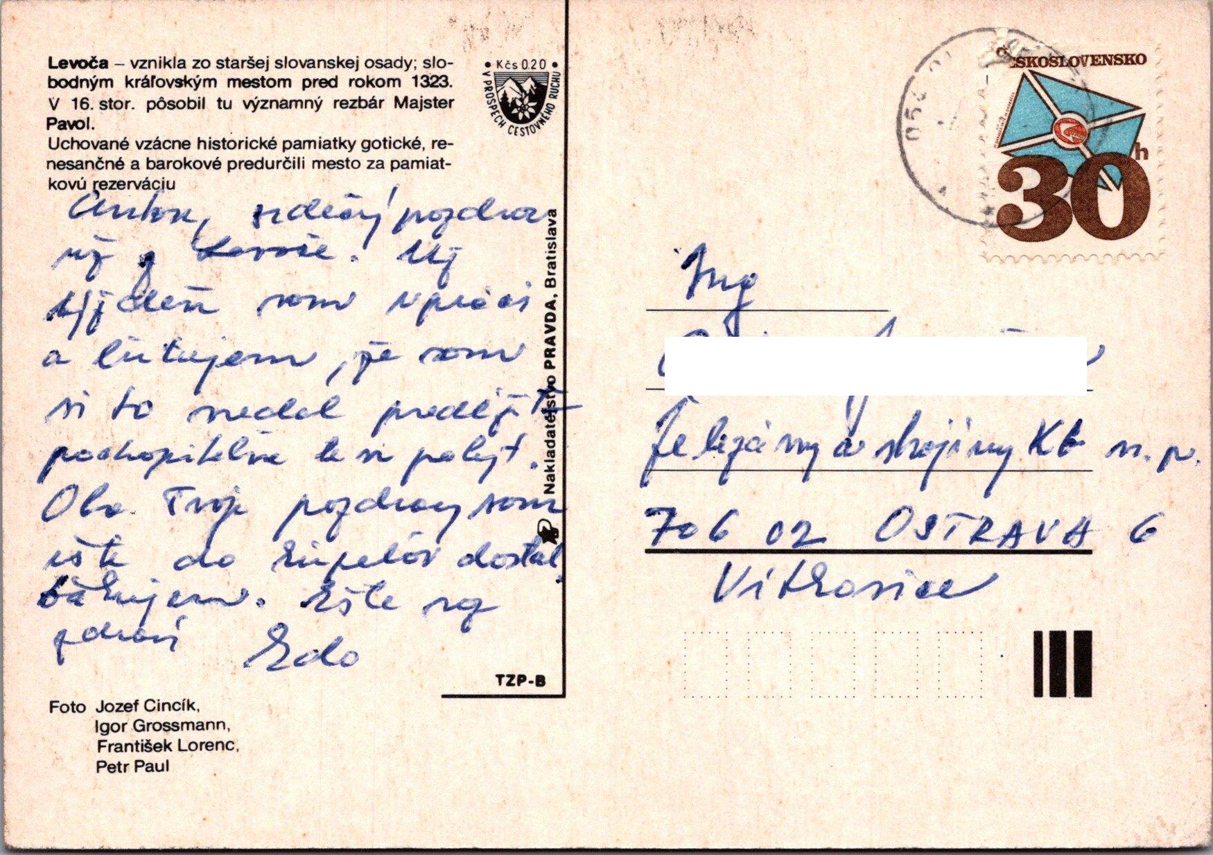 Rok odoslania: nie je vidieť, 70. až 80. roky 20. storočia