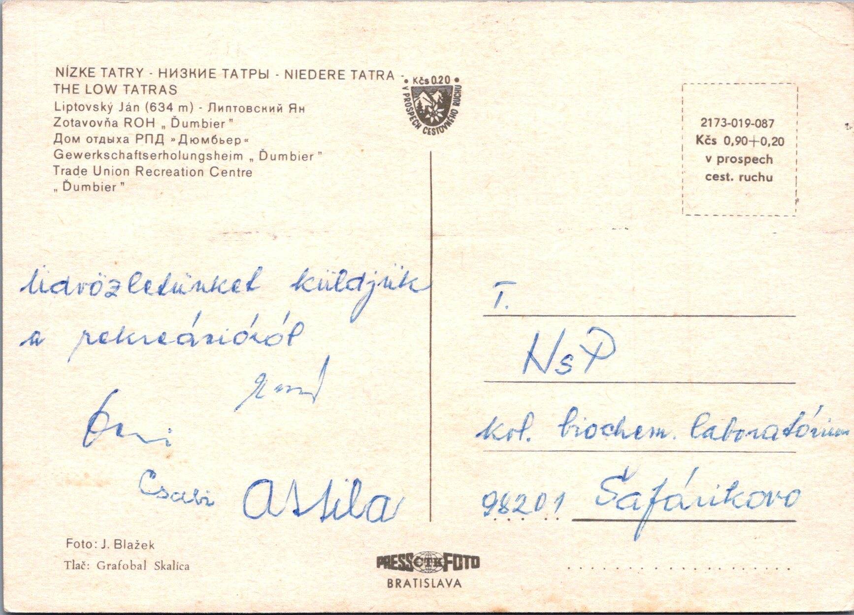 Rok odoslania: neprešla poštou, ale je popísaná