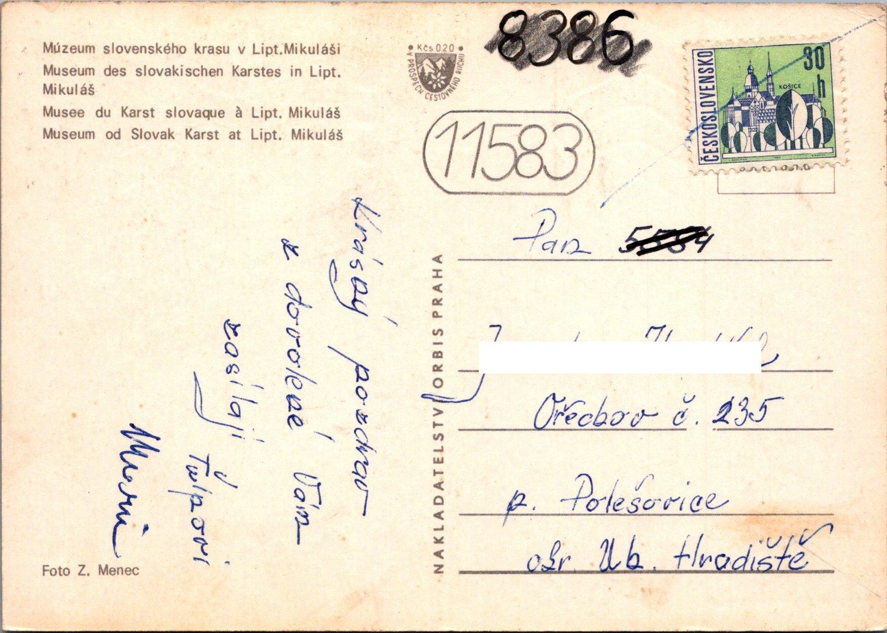 Rok odoslania: pravdepodobne neprešla poštou, ale je popísaná aj so známkou