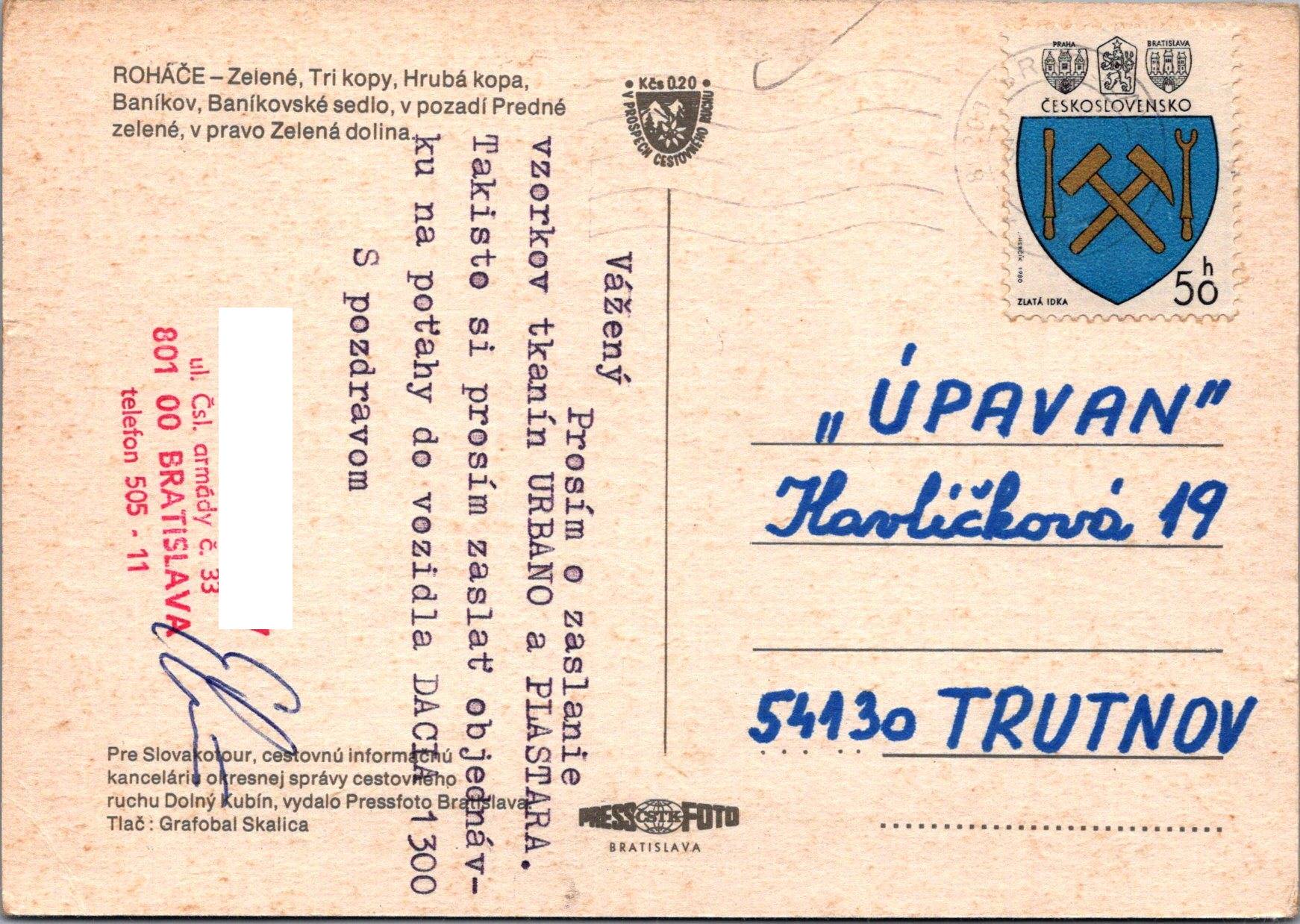 Rok odoslania: nie je vidieť, 70. až 80. roky 20. storočia