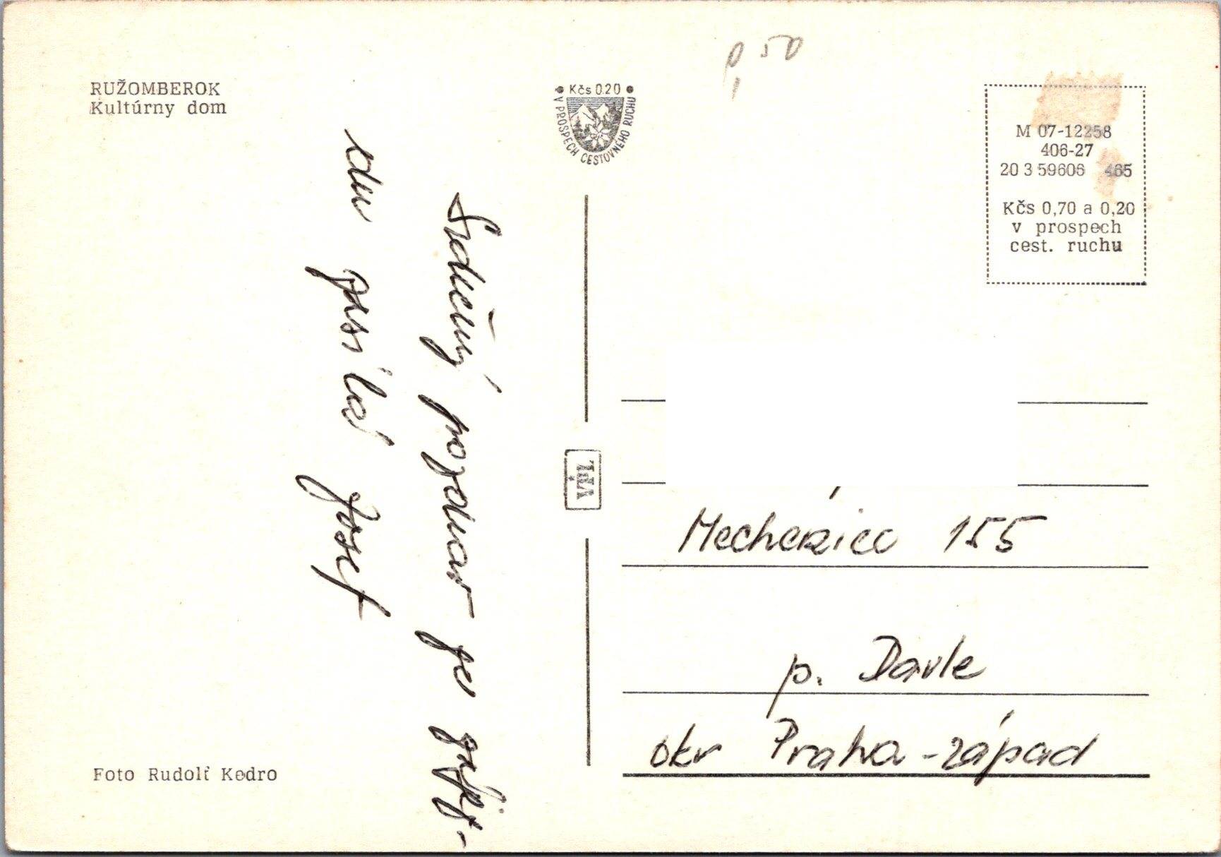 Rok odoslania: pravdepodobne neprešla poštou, ale je popísaná