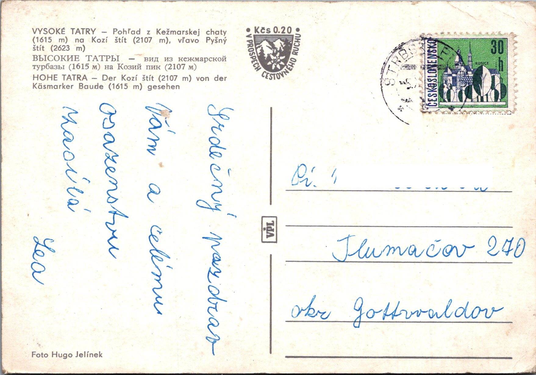 Rok odoslania: nie je vidieť, 60. až 70. roky 20. storočia