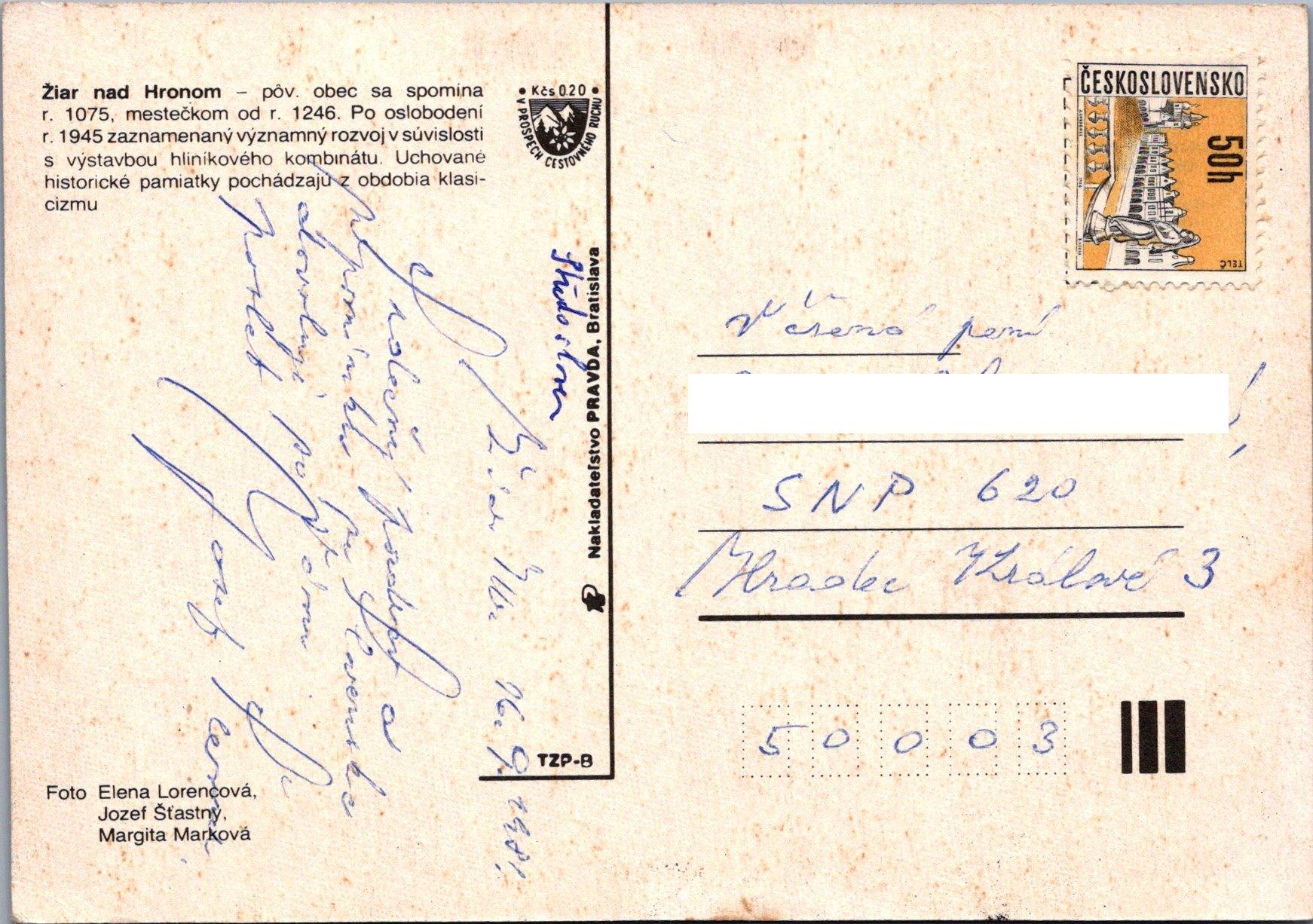 Rok odoslania: pravdepodobne neprešla poštou, ale je popísaná aj so známkou, napísaný dátum 1981